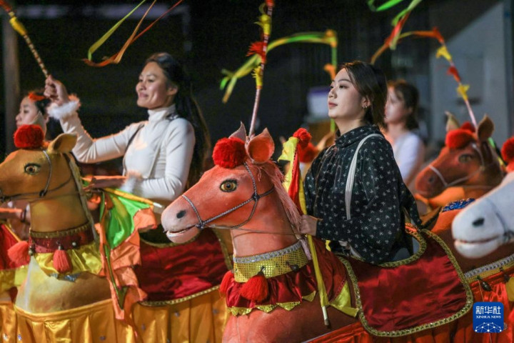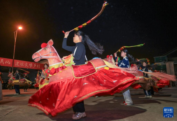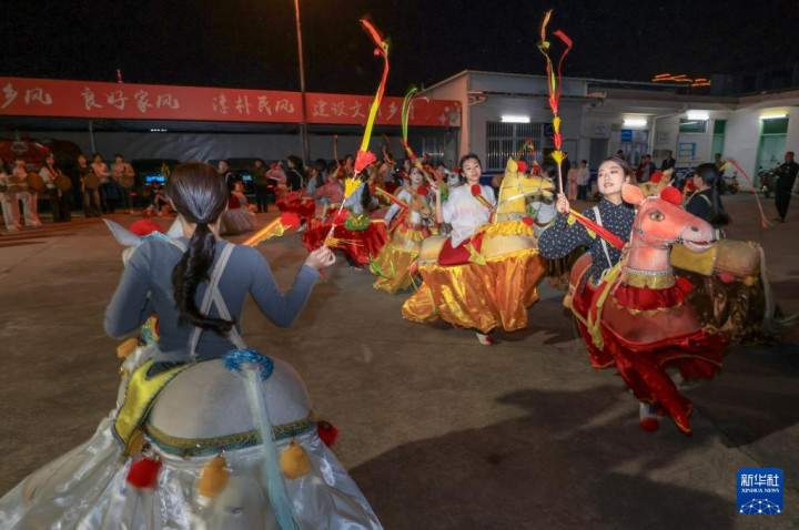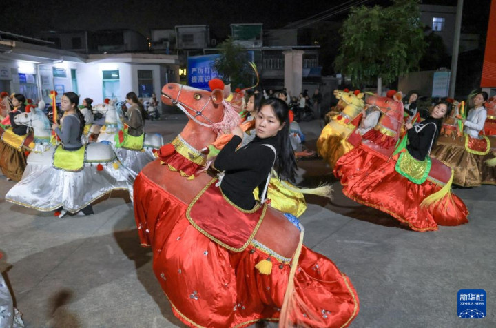 新春将至,广东省潮州市饶平县处处洋溢着喜庆的节日氛围,当地居民正紧锣密鼓地排练独具特色的布马舞,为春节期间的庆典活动做准备。