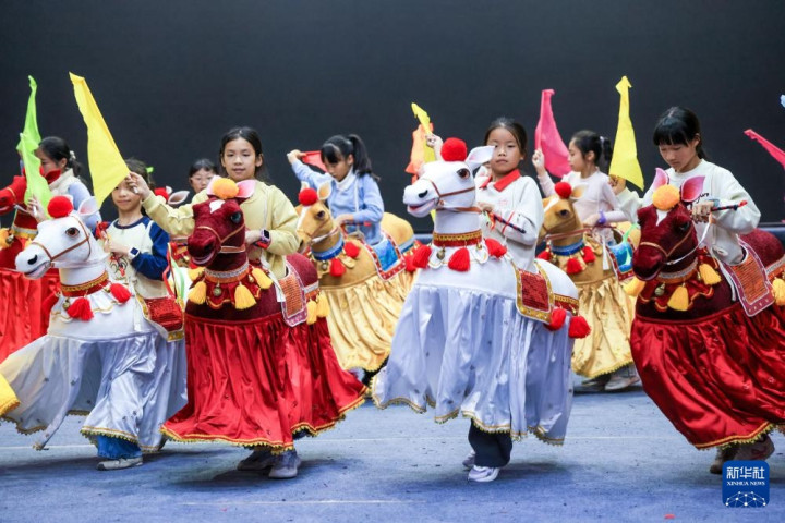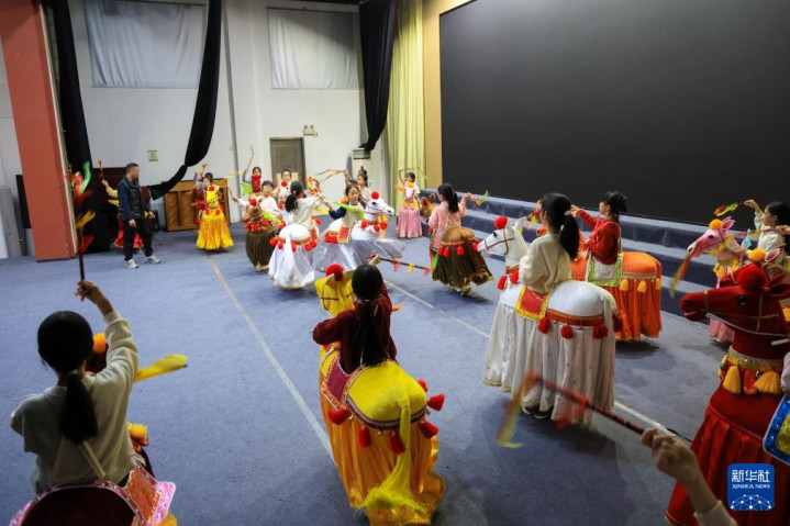 2月4日,在广东省潮州市饶平县青少年宫,少儿布马舞队队员在排练。新华社记者毛思倩摄